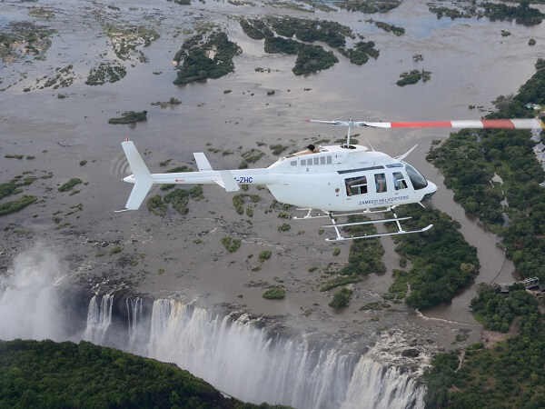 Book an awe-inspiring 12-13 minute helicopter flight over Victoria Falls, where you'll witness the breathtaking beauty of one of the world's most iconic natural wonders. Soar above the majestic Zambezi River, feeling the mist from the falls as you revel in panoramic views. Marvel at the vast expanse of the falls and the surrounding landscapes, capturing this extraordinary spectacle from a unique aerial perspective that promises an unforgettable and thrilling experience.