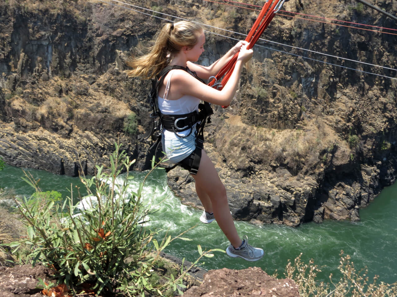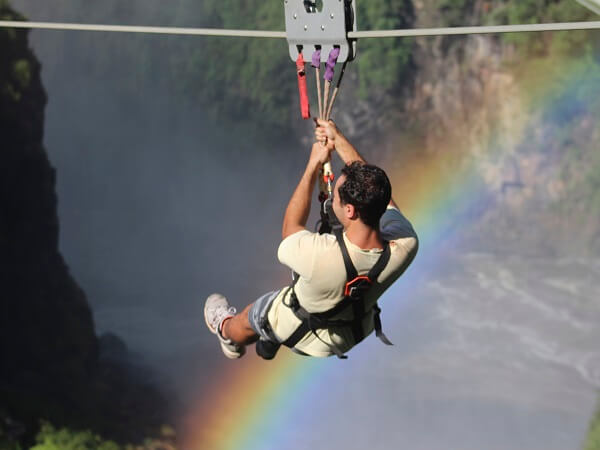 Indulge in a solo zipline adventure in Victoria Falls, soaring above the Zambezi River with stunning views of the iconic waterfall. Securely harnessed, launch from the platform, accelerating through the air at thrilling speeds. Feel the rush of wind as you soar across the Zambezi river, creating memories that will last for ever
